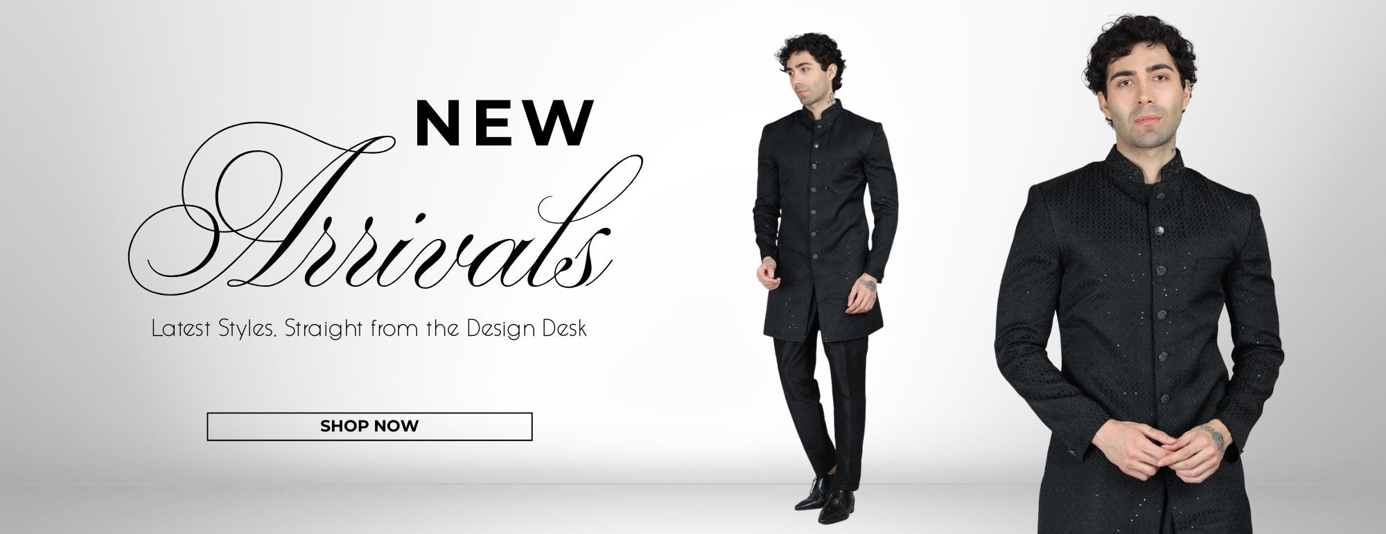 Men's Black Brocade Semi Sherwani