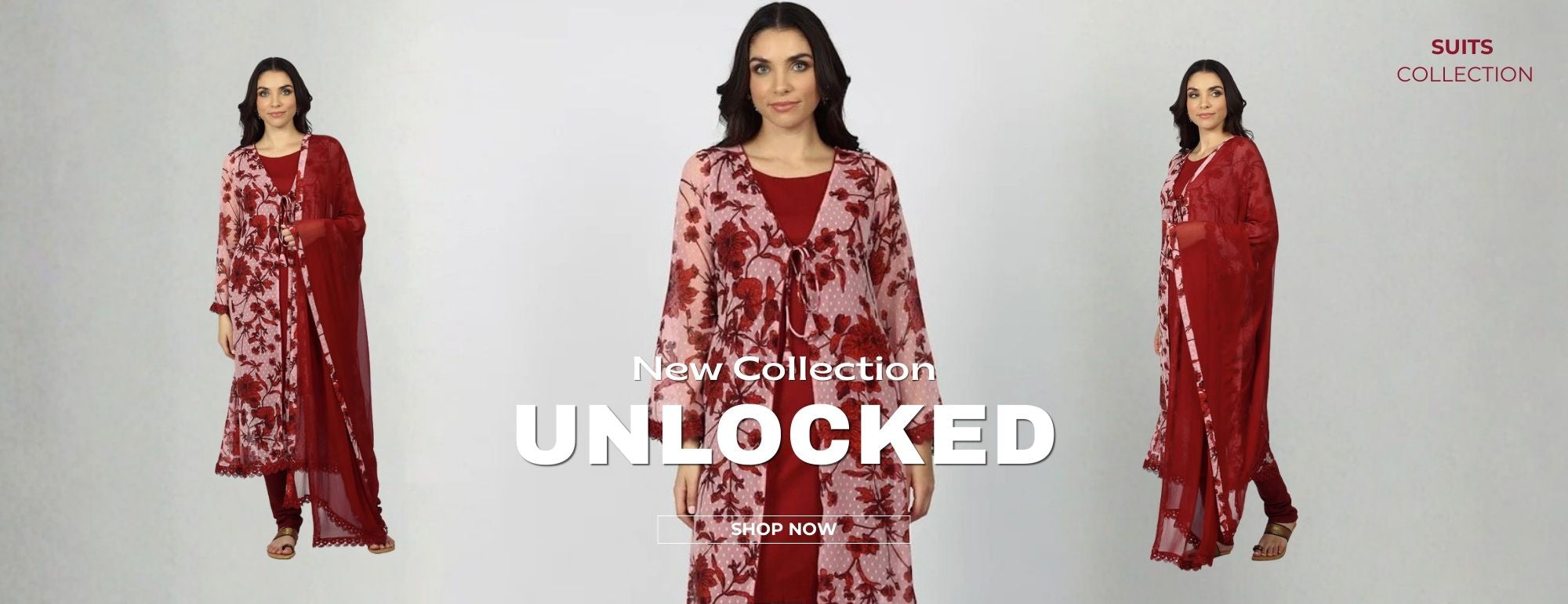 Grey Chiffion Printed Jacket Style Suit Set