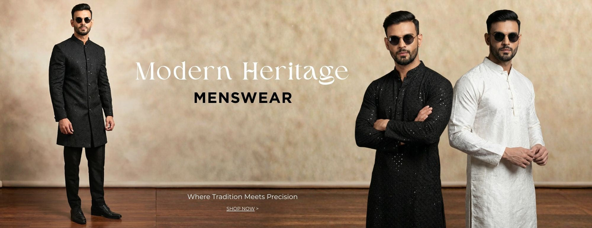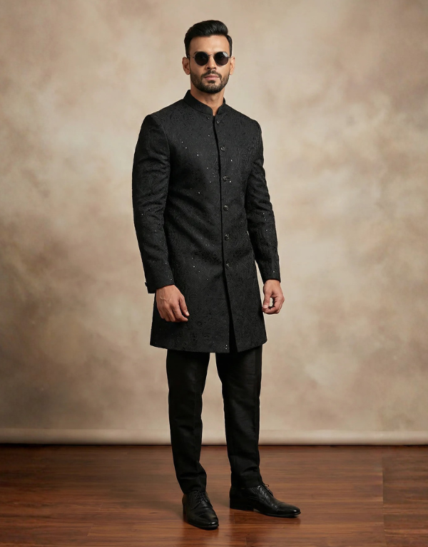 Men's Black Brocade Semi Sherwani
