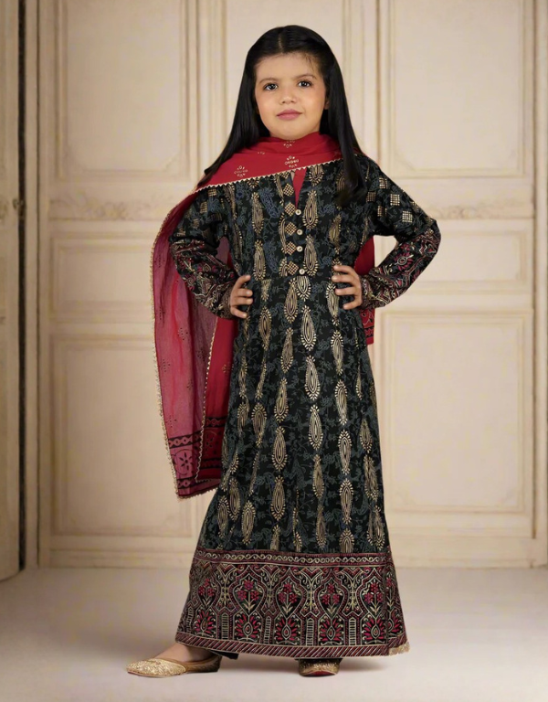 Dark Green Linen Velvet Dupatta Suit Set