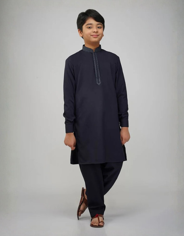 Navy Blue Linen Velvet Dupatta Suit Set