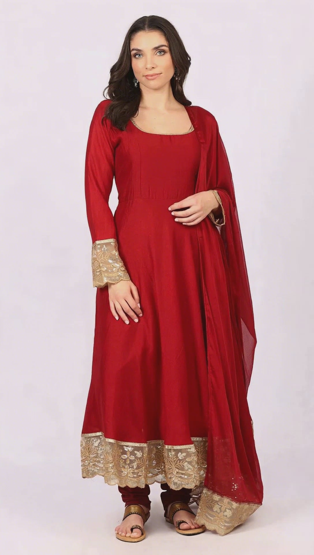 Georgette Maroon Vichitra Bias Cut Suit Set