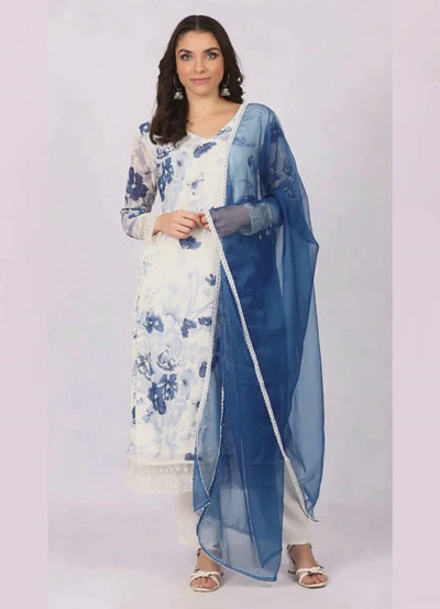 Georgette Printed White Suit Set